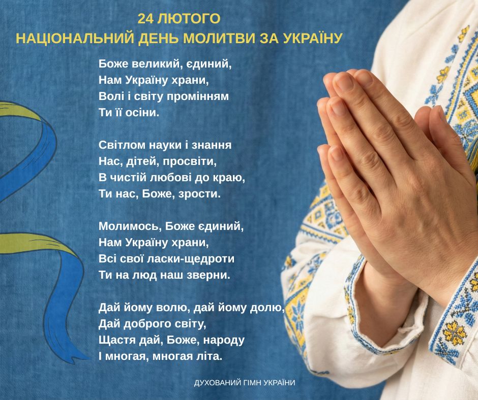 24 лютого, у річницю повномасштабного вторгнення російської федерації в Україну, Національний день молитви вдруге відзначатиметься на державному рівні.
