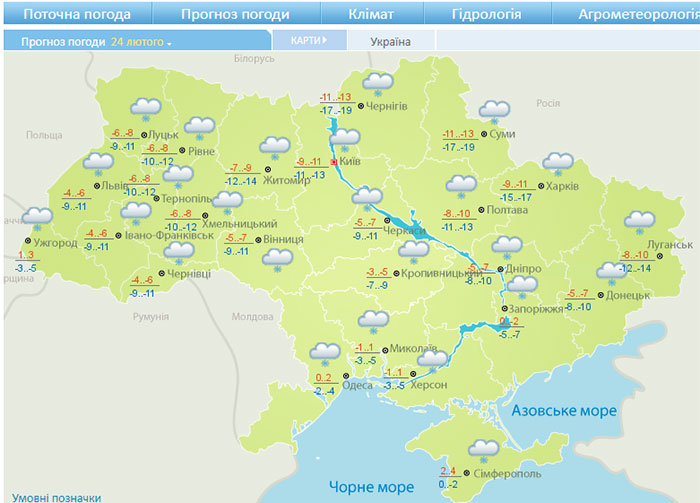 27 лютого – сніжитиме. Вночі 17-19° морозу, вдень 9-11° морозу.