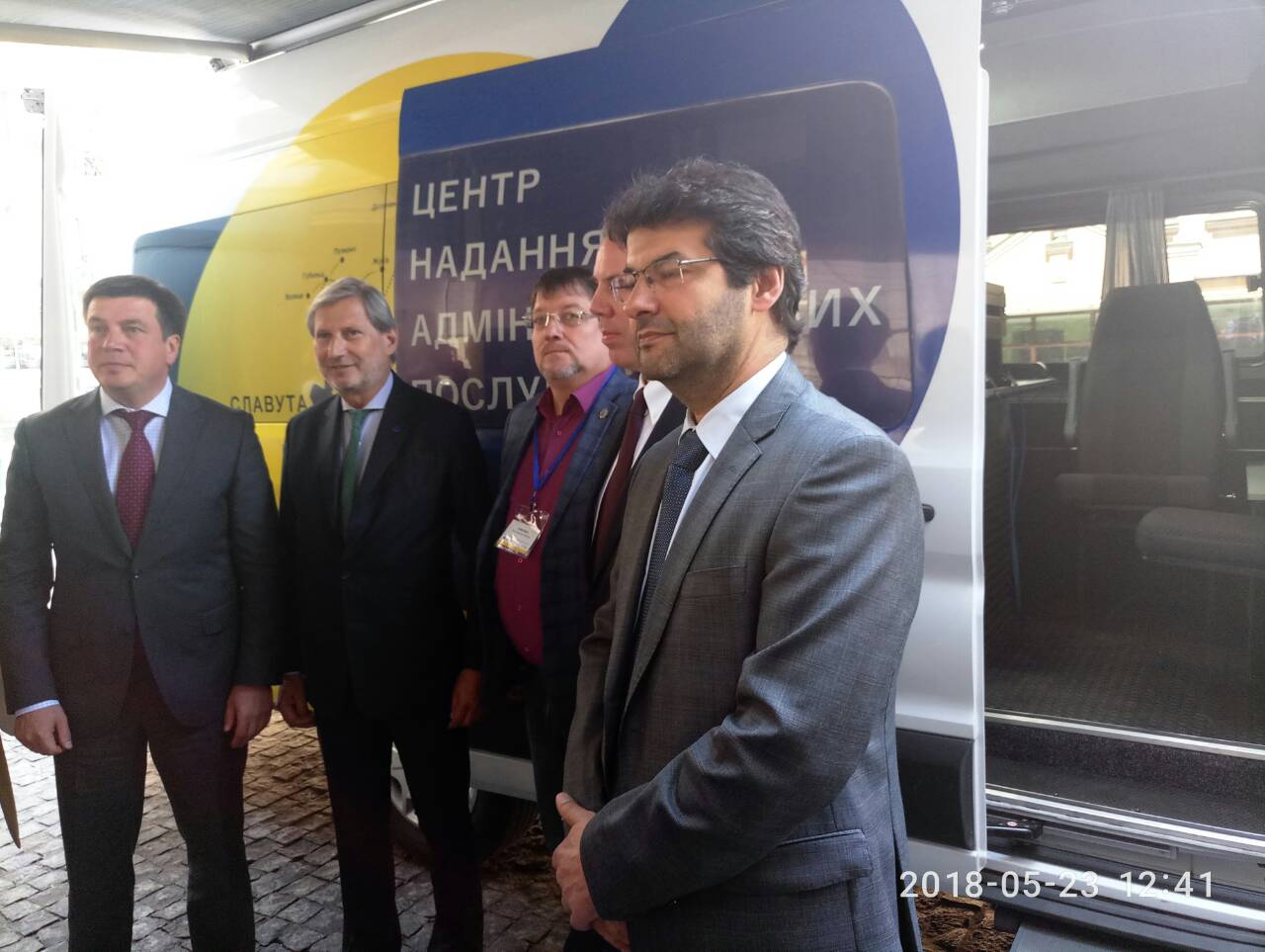 Сьогодні, 23 травня, в рамках робочого візиту комісара Європейського Союзу з питань європейської політики сусідства і переговорів по розширенню Йоханнеса Хана до Києва, міський голова Славути Василь Сидор презентував мобільний ЦНАП.