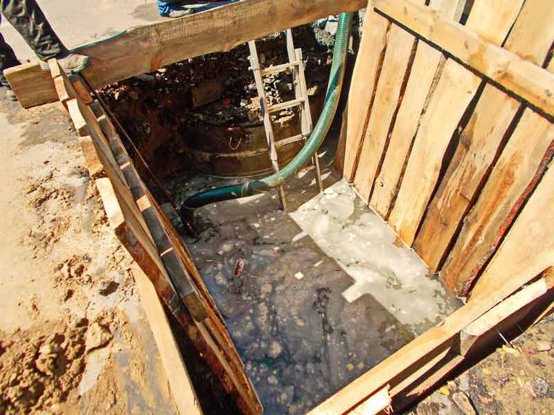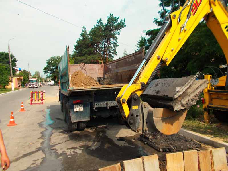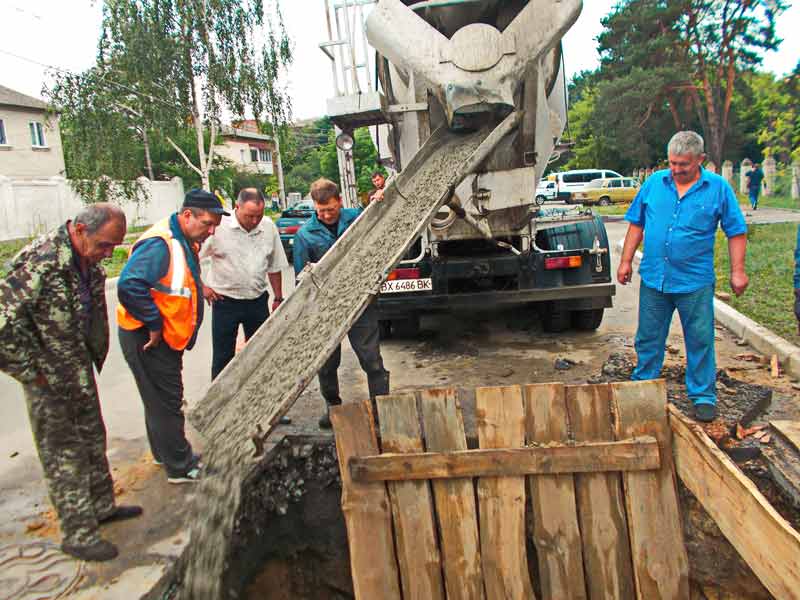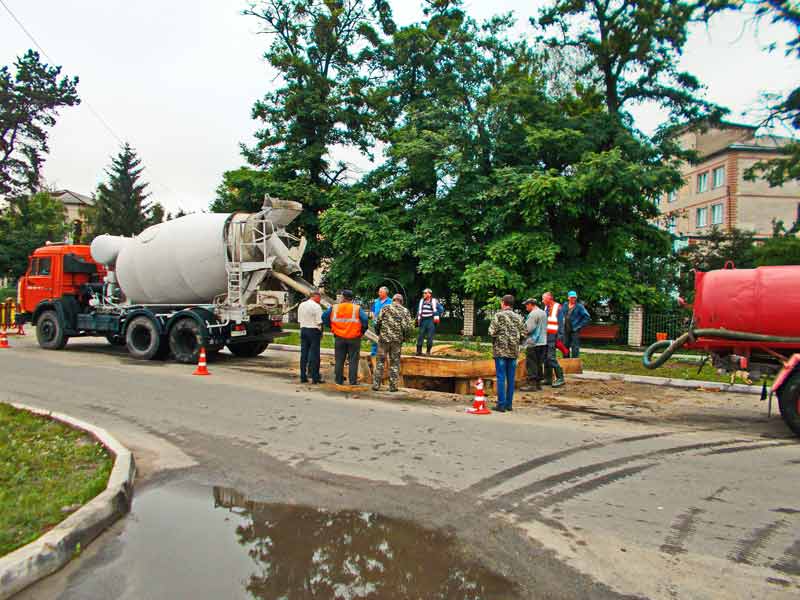 - Як виявилось, внаслідок провалу дорожнього покриття в каналізаційний колектор діаметром 600 мм., на вул. Я.Мудрого 52, поблизу ЦРЛ, який відбувся 04 червня 2018 р., був пошкоджений не лише колектор. Від удару отримали ушкодження і труби комунікацій які знаходяться поблизу колектора. Пізніше, у результаті підмиву ґрунту, утворилось «просідання» дорожнього покриття. Як з’ясувалось, були пошкодженні ще й труби самопливного каналізаційного колектора діаметром 500 мм. Зусиллями працівників Славутського УВКГ були здійсненні дуже складні ремонтно-відновлювальні роботи та покладено захисний бетонний шар над трубами.