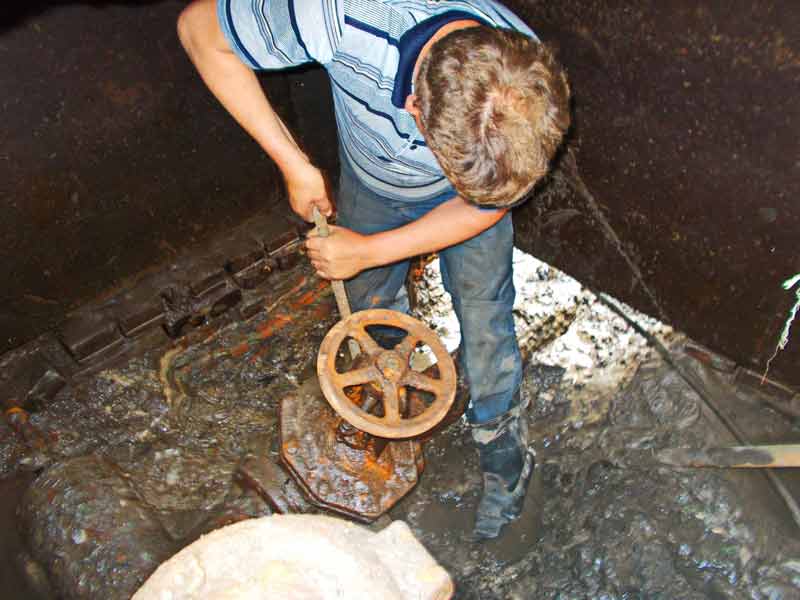 - Відремонтована засувка запірної арматури подання води з водозабірних свердловин діаметром 250 мм. у розподільчій камері фільтру знезалізнення води №1 ФОВ 3.2. Фільтр освітлювальний вертикальний призначений для доочистки води централізованих систем і нецентралізованого питного водопостачання, а також очищення води поверхневих і підземних джерел водопостачання, до значень показників якості очищеної питної води. Фільтр є зварною закритою місткістю із сталі, усередині якої розташовані трубопроводи і завантаження (фільтруючий елемент), а також система регенерації фільтруючого елементу.