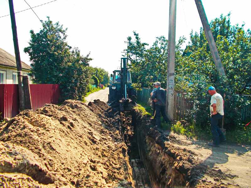 - Здійснюються роботи із будівництва водогону на вул. Парковій. Для робіт використовуються труби ПЕ (поліетиленові) напірні для подачі води діаметром 50 мм., строк використання яких складає до 50 років.