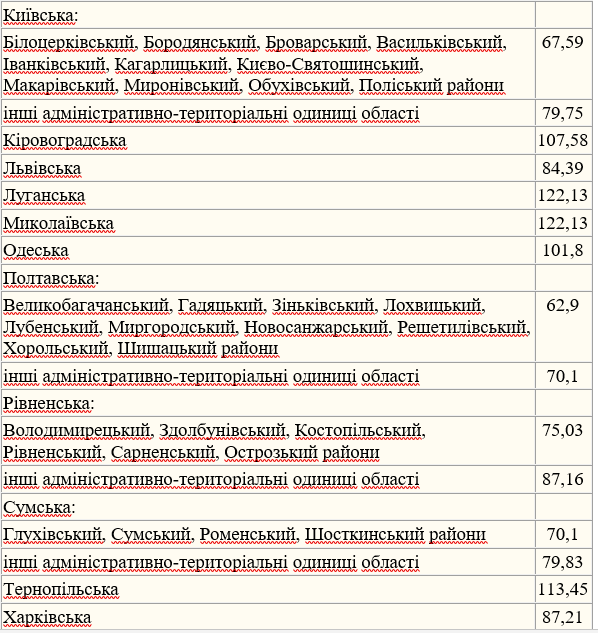 Так коефіцієнт коригування витрат з податків становить для населення 1,09253, для бюджетних установ та інших споживачів – 1,9207.