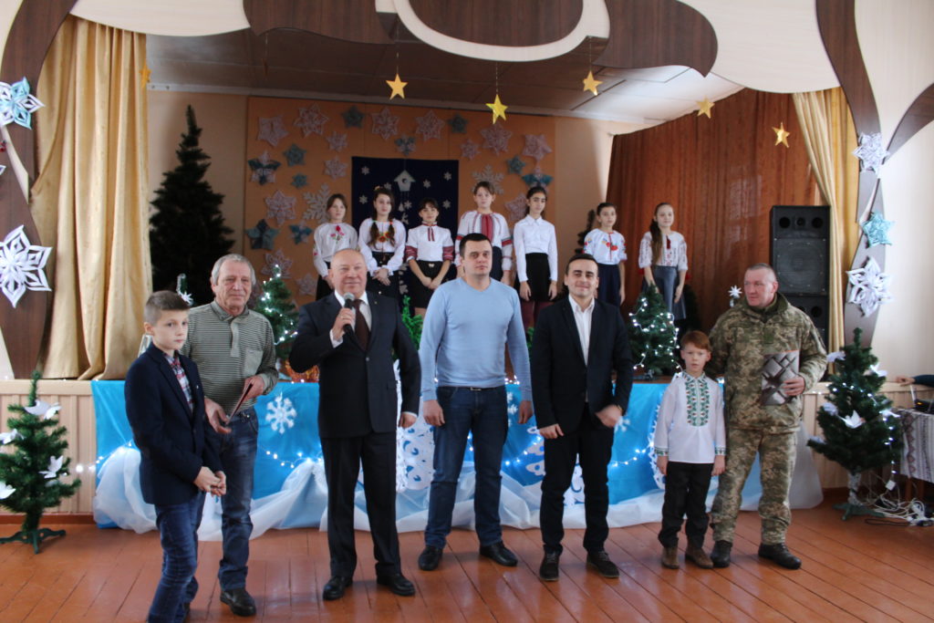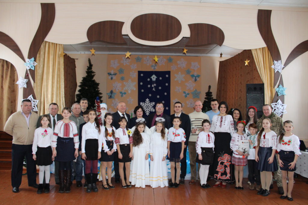 Голова правління фонду Микола Рождествєнський, наш земляк привітав дітей та дорослих зі святом та вручив страхові поліси двом родинам військовослужбовців – сім’ї Павлюків та Турчин.
