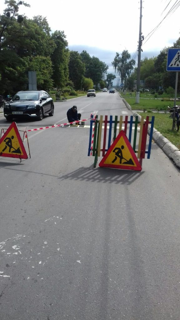 У центрі Славута вздовж вулиці Ярослава Мудрого працівники КП «Славута-Сервіс» встановили два «лежачі поліцейські».