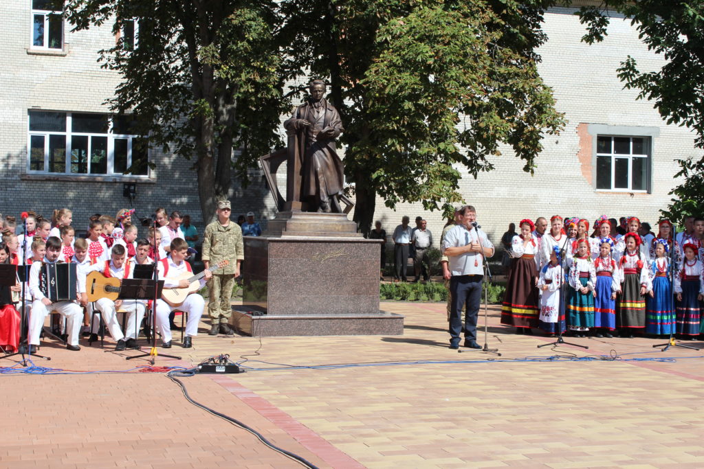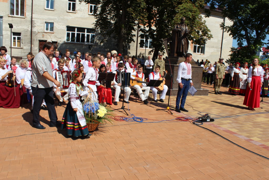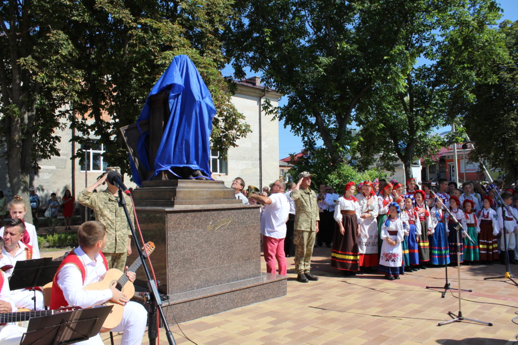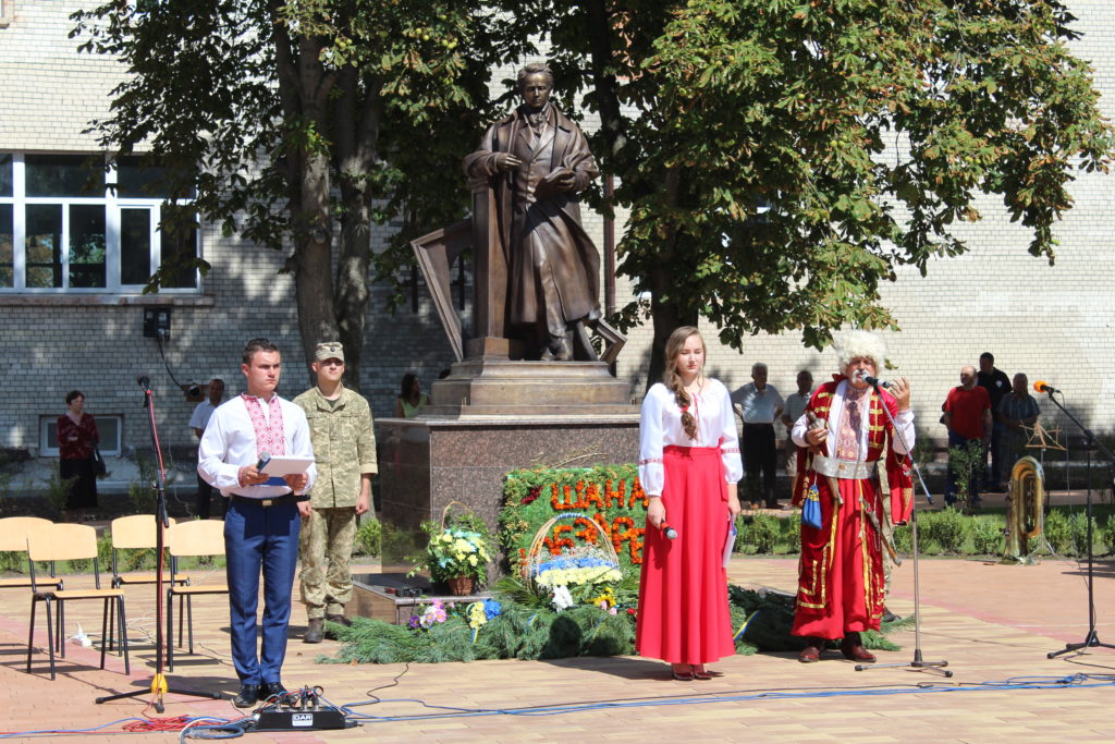 На площу Т.Г. Шевченка, де спорудили монумент Кобзарю, прийшли сотні людей: представники міської влади, громадські активісти, учасники бойових дій, виконавці робіт з виготовлення скульптури, військовослужбовці військової частини А1358, діти, гості та запрошені з інших міст – усі ті, хто глибоко шанує пам’ять про цю геніальну людину, поета, художника, мислителя, борця та просвітителя.
