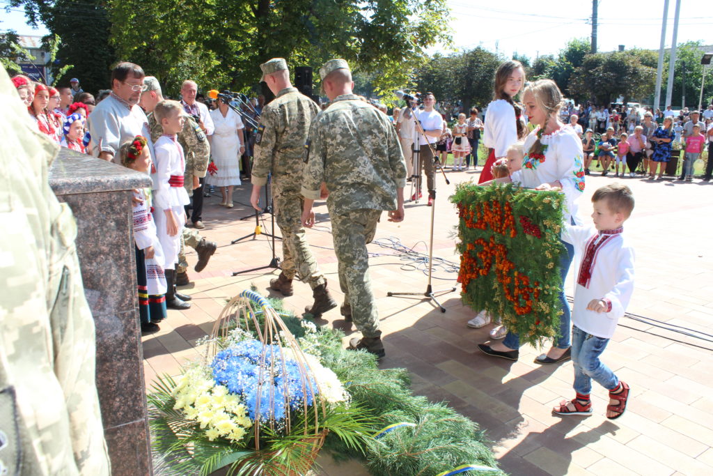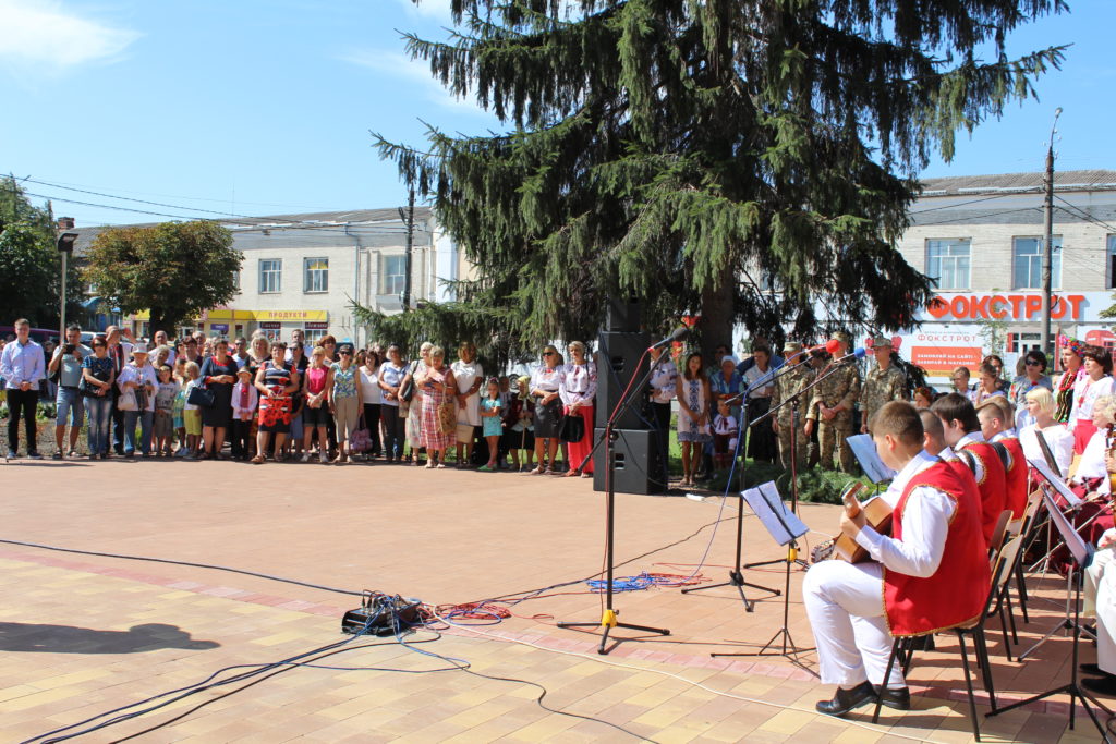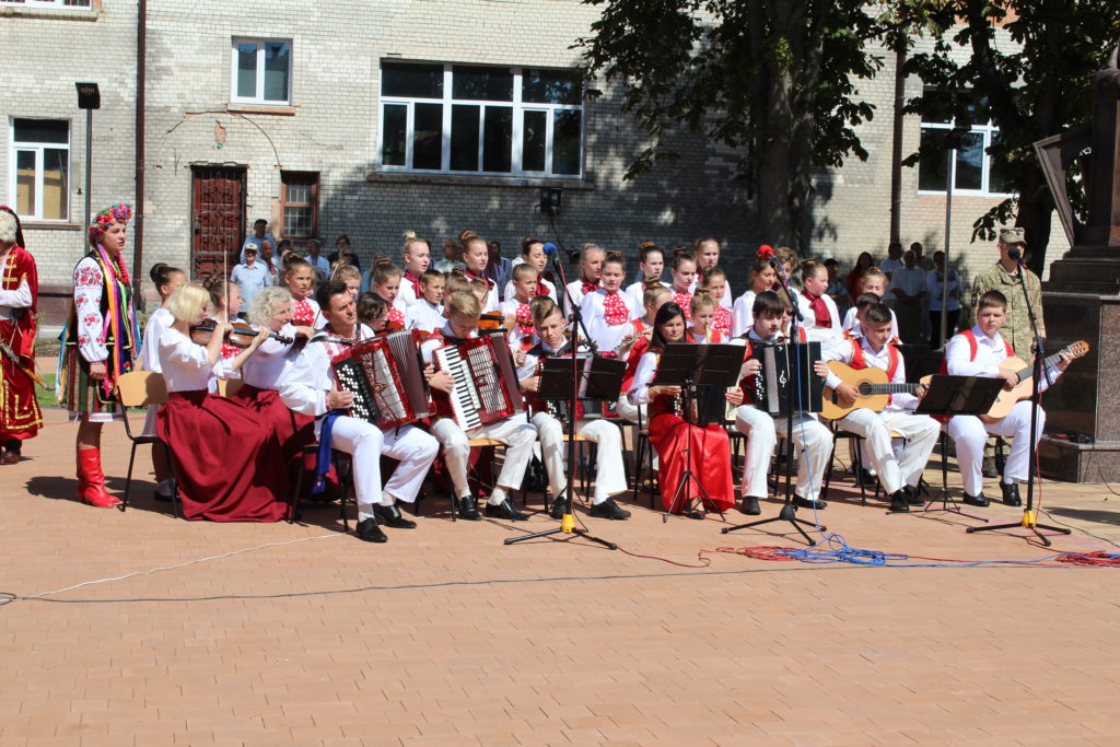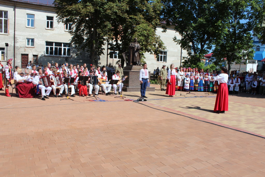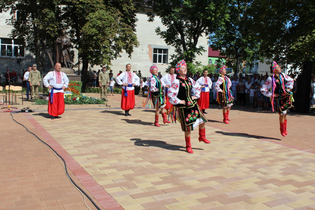 На площу Т.Г. Шевченка, де спорудили монумент Кобзарю, прийшли сотні людей: представники міської влади, громадські активісти, учасники бойових дій, виконавці робіт з виготовлення скульптури, військовослужбовці військової частини А1358, діти, гості та запрошені з інших міст – усі ті, хто глибоко шанує пам’ять про цю геніальну людину, поета, художника, мислителя, борця та просвітителя.