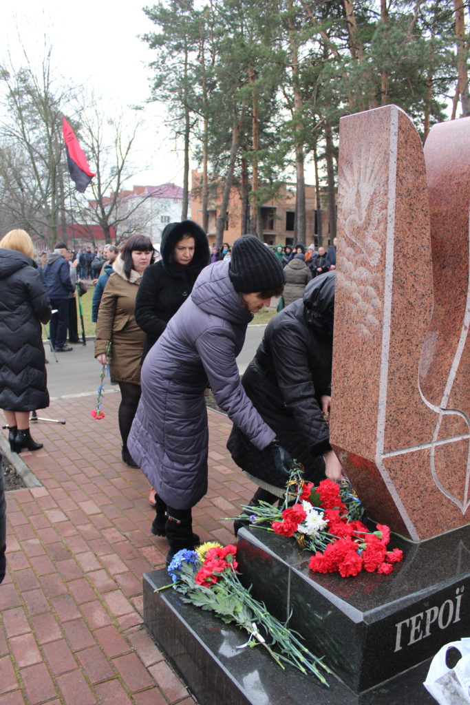 Віддавши шану світлій памʼяті загиблих героїв хвилиною мовчання, учасники заходу поклали квіти до пам’ятного знаку Героям Небесної Сотні.