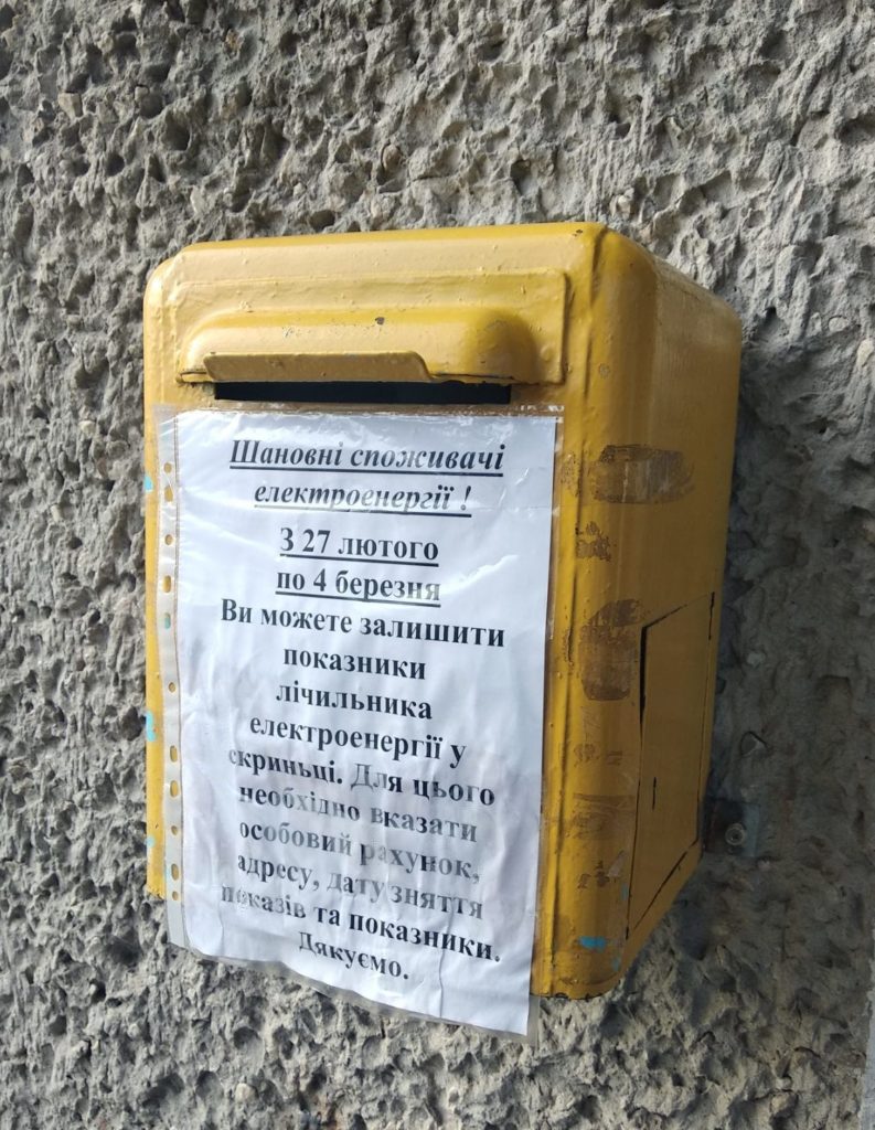 Більше того, Славутський РЕМ ПАТ «Хмельницькобленерго» йде назустріч людям старшого віку, встановивши скриньку, за допомогою якої можна подати показники, вказавши особовий рахунок, адресу, дату зняття показів та показники.