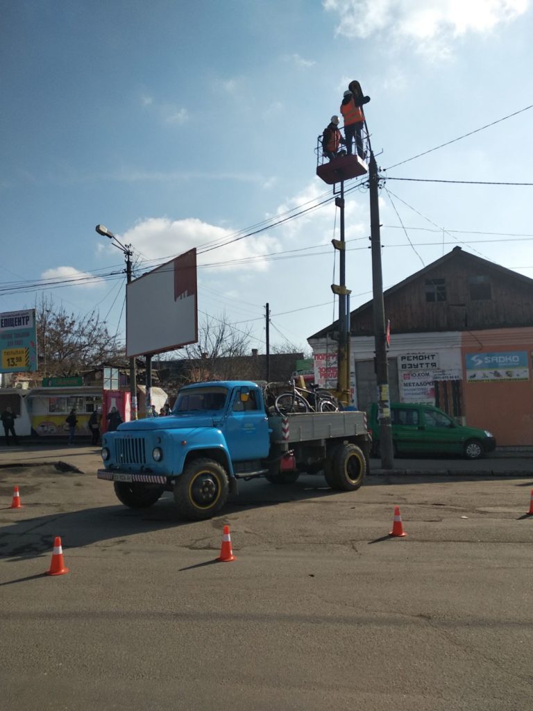 Крім того, силами підприємства проводиться заміна старих світильників вуличного освітлення на нові енергозберігаючі. Так, днями такі роботи виконувалися на площі біля міського автовокзалу. Також продовжується обрізка сухого гілля, аварійних дерев по місту.