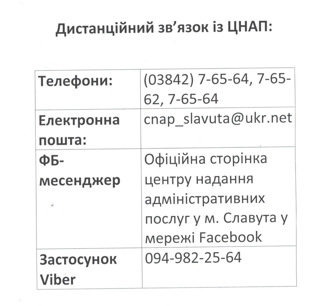 Славутський ЦНАП. Для відвідувачів тут розроблені наступні правила: відвідувати Центр у випадку крайньої необхідності та у захисних масках (респіраторах); звернення громадян залишати у скрині для кореспонденції, що при вході до будівлі; дозволено одночасно перебувати у відкритій частині ЦНАП не більше 10 осіб із дотриманням дистанції відстані не менше 1 метра; за можливістю отримувати результати розгляду справ у електронній формі або через засоби поштового звʼязку.