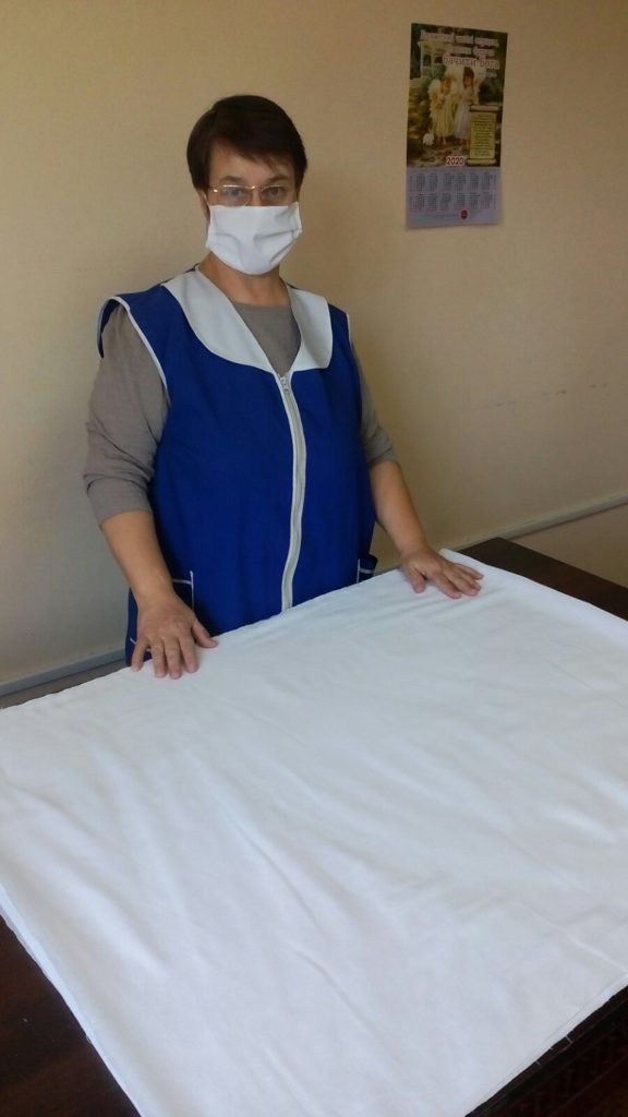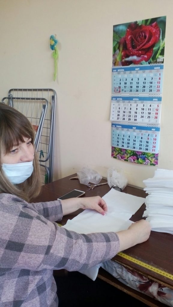 Через дефіцит у аптеках одноразових масок, працівники КУ «Славутський територіальний центр соціального обслуговування» почали шити їх своїми руками. В якості тканини для пошиву використовують марлю, яку безкоштовно надав місцевий приватний підприємець Анатолій Казіміров.