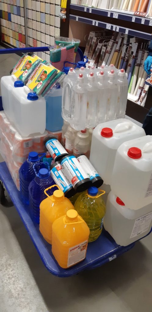 Сьогодні свою благодійну допомогу надав торговий центр «Епіцентр», який передав для центральної районної лікарні та центру первинної медико-санітарної допомоги партію засобів дезинфекції та особистої гігієни (на фото директор ТЦ «Епіцентр» Руслан Високогляд та головний лікар КП «Славутська ЦРЛ» Віктор Іващук).