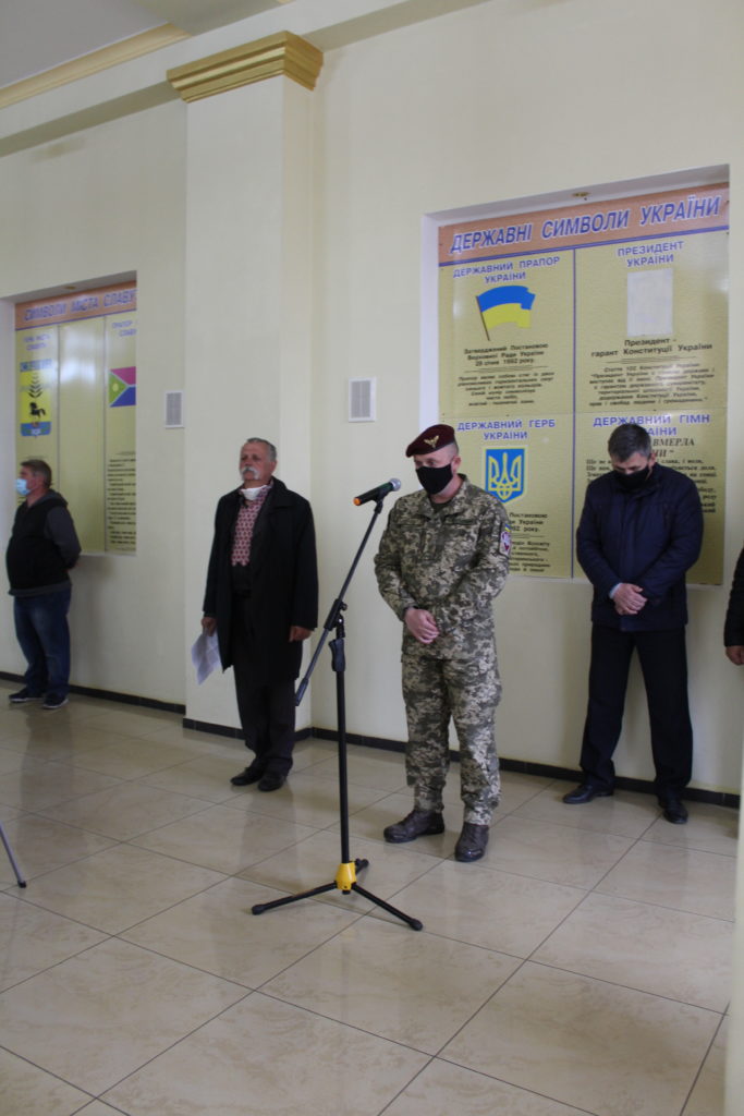 Із сумом слова співчуття, поваги та вдячності за виховання сина родині захисника висловили перший заступник міського голови Сергій Микульський та представник 80-ї окремої десантно-штурмової бригади, у якій служив Сергій.