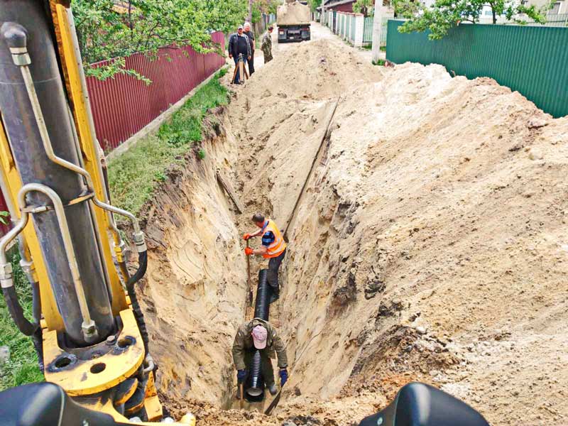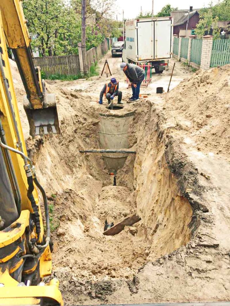 2. У мікрорайоні «Південний» продовжуються роботи із будівництва каналізаційних мереж. Зважаючи на існуючи комунікації електричних мереж, газових та водогінних систем постачання, піщаний ґрунт, який постійно осипається з стінок канави, робота із прокладення каналізації є надзвичайно складною. За цей тиждень, незважаючи на велику складність роботи, у мікрорайоні «Південний» прокладено 36 метрів труби ПВХ (полівінілхлоридної) діаметром 250 мм. та змонтовано колодязь інженерних комунікацій.