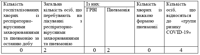 У приміщенні інфекційного відділення Славутської ЦРЛ на лікуванні перебуває 4-ро осіб з діагнозом COVID-19 – одна з міста Нетішин (особа потребує гемодіалізу), одна з Деражнянського району (особа потребує гемодіалізу), двоє з Летичівського району (особи потребують гемодіалізу).