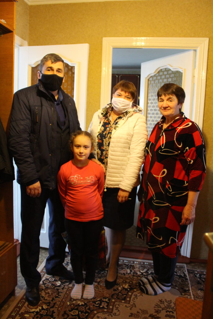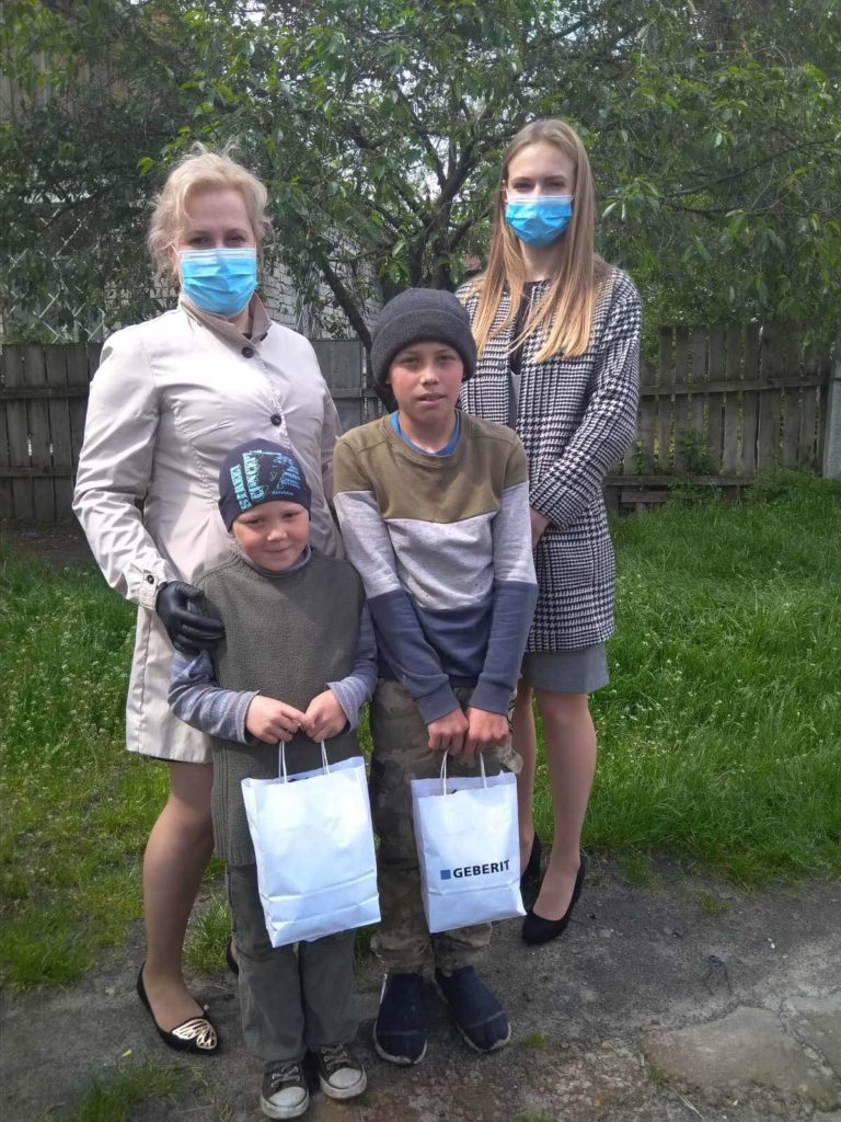 Заступник міського голови Ігор Піголь, начальник служби у справах дітей виконавчого комітету Славутської міської ради Наталія Шаргородська, представники ПРАТ «ГЕБЕРІТ КЕРАМІК ПРОДАКШН» – Олена Фердман та Катерина Перехристюк відвідали сім’ї соціально вразливих категорій громадян Славутської ОТГ, привітали дітей зі святом і вручили солодкі подарунки.