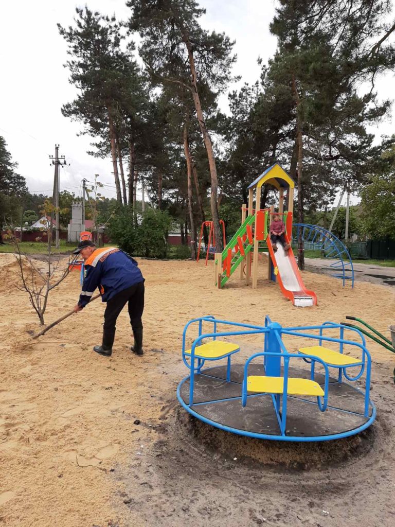 Працівниками КП «Славута-Сервіс» встановлено дитячий майданчик на вул. Лермонтова у мікрорайоні «Південний», покошено, прибрано та вивезено траву.