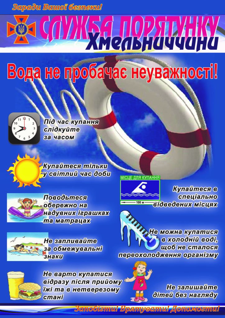 Шановні громадяни! Головне управління ДСНС України у Хмельницькій області звертається до Вас із застереженням бути вкрай обережними під час відпочинку на воді, щоб він був для Вас і Ваших дітей вдалим, весь час суворо дотримуйтеся порад рятувальників!