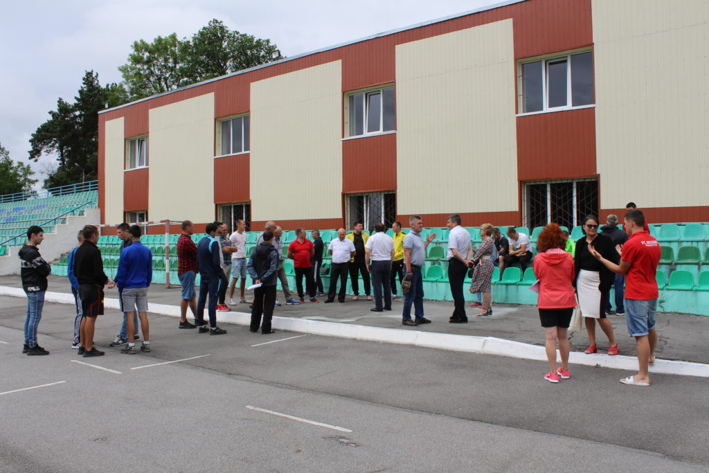 07 липня на території міського стадіону відбулася зустріч представників міської влади – міського голови Василя Сидора, заступника міського голови Ігоря Піголя, начальника відділу у справах молоді та спорту Славутського МВК Олександра Косюка, директора ДЮСШ Ірини Яремчук, тренерського складу з футболу із головою Федерації футболу Славути Миколою Кишаном та представниками футбольної громадськості міста.