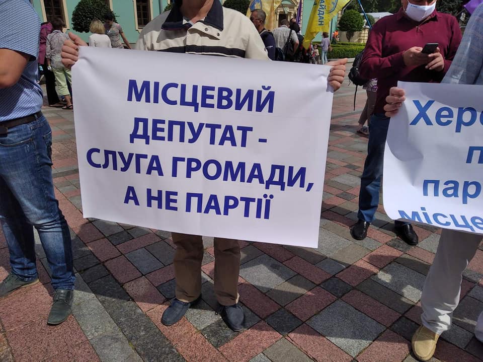 Сьогодні, 15 липня, у Києві, перед будівлею Верховної ради України, Славутська делегація на чолі з міським головою Василем Сидором разом із представниками органів місцевого самоврядування, депутатами місцевих рад, небайдужими жителями Хмельниччини взяли участь у мирній акції з вимогою до народних депутатів не підтримувати законопроєкт № 3485 «Про внесення змін до деяких законів України щодо вдосконалення виборчого законодавства» та проєкт Постанови Кабінету міністрів України №3650 «Про утворення та ліквідацію районів».