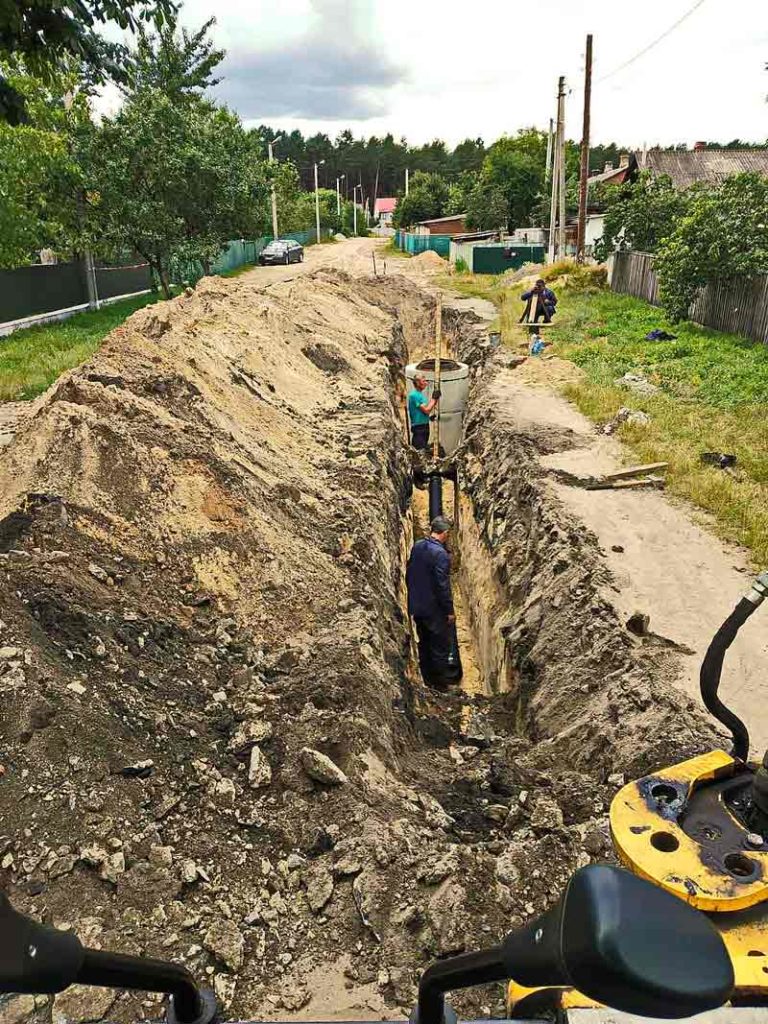 1. У мікрорайоні «Південний» продовжуються роботи із будівництва каналізаційних мереж. Зважаючи на існуючи комунікації електричних мереж, газових та водогінних систем постачання, піщаний ґрунт, який постійно осипається з стінок канави, робота із прокладення каналізації є надзвичайно складною. За цей тиждень, незважаючи на велику складність роботи, прокладено 66 метрів труби ПВХ (полівінілхлоридної) діаметром 200 мм. та змонтовано колодязь інженерних комунікацій.