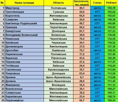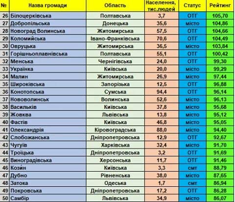 За результатами наданої інформації, Фондом “Регіональний центр економічних досліджень та підтримки бізнесу” сформовано черговий рейтинг інституційної спроможності і сталого розвитку малих та середніх громад України.