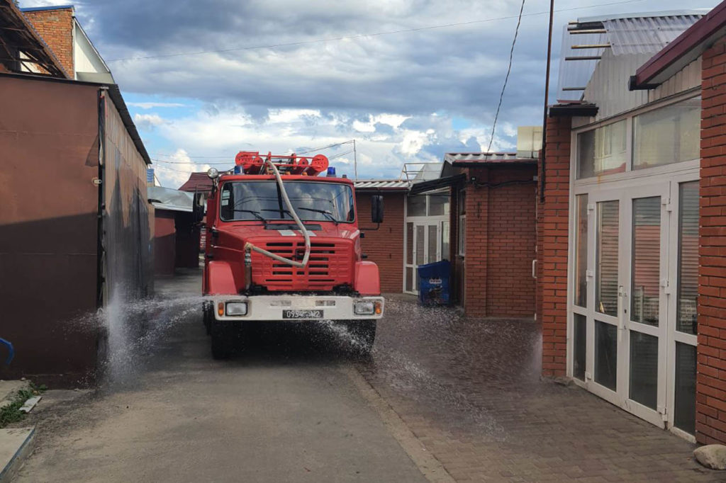 Спецобробка проводилась дезінфектором, який розпилювався за допомогою пожежного автомобіля, а також мотооприскувачами.