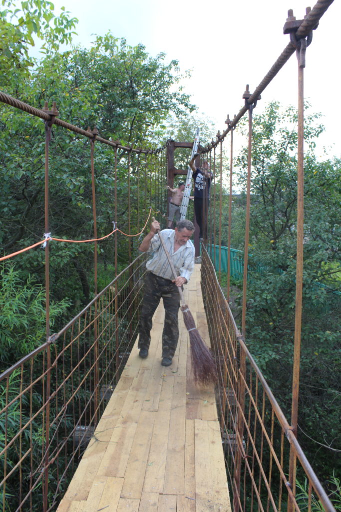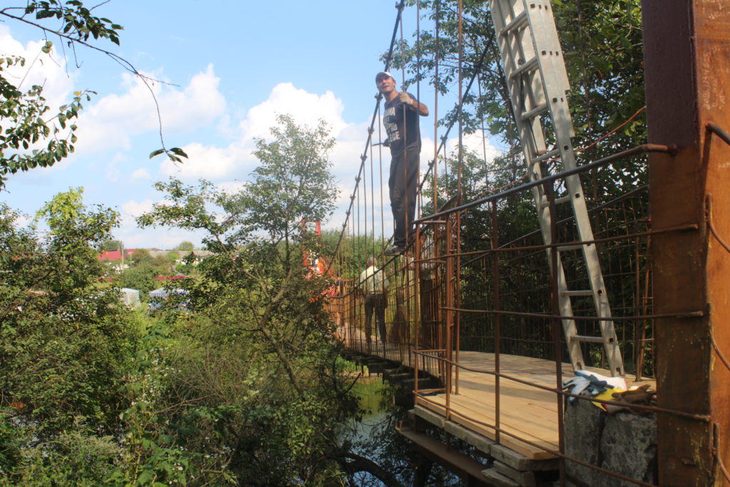 Протягом всього дня тривають активні роботи з оновлення підвісного мосту у мікрорайоні «Південний».