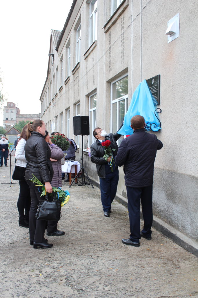 Право відкрити меморіальну дошку надали міському голові Василю Сидору, мамі загиблого, Марії Василівні, сестрам Тетяні та Людмилі, директору школи Олександру Палію.
