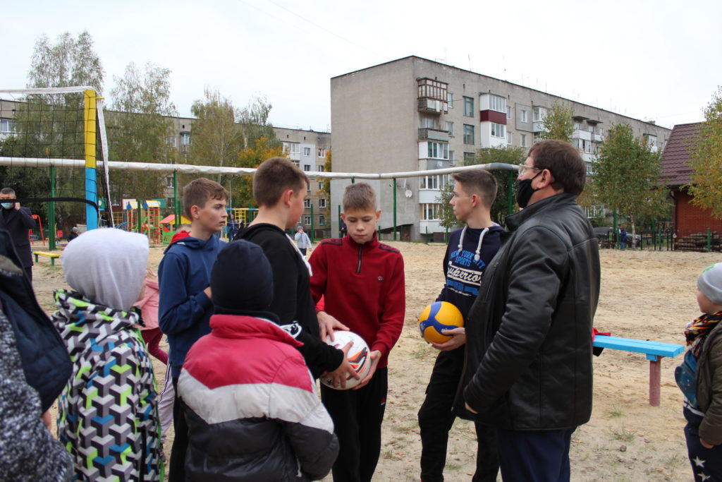 Сьогодні міський голова Василь Сидор разом із депутатами міської ради, начальником КП «Славутське ЖКО» Василем Яцюком та директором Центру ФЗН «Спорт для всіх» Валерієм Шабуровим вручили юним славутчанам подарунки від громади – передали м’ячі (футбольний, волейбольний, баскетбольний), сітки, якими відтепер вони розпоряджатимуться самостійно.