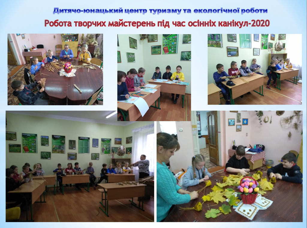 Керівники гуртків Г.Верещук та С.Петрук провели цикл майстер-класів «Осінні барви». Діти спробували свої сили у створенні оберегів з рогозу та квітів з осіннього листя.