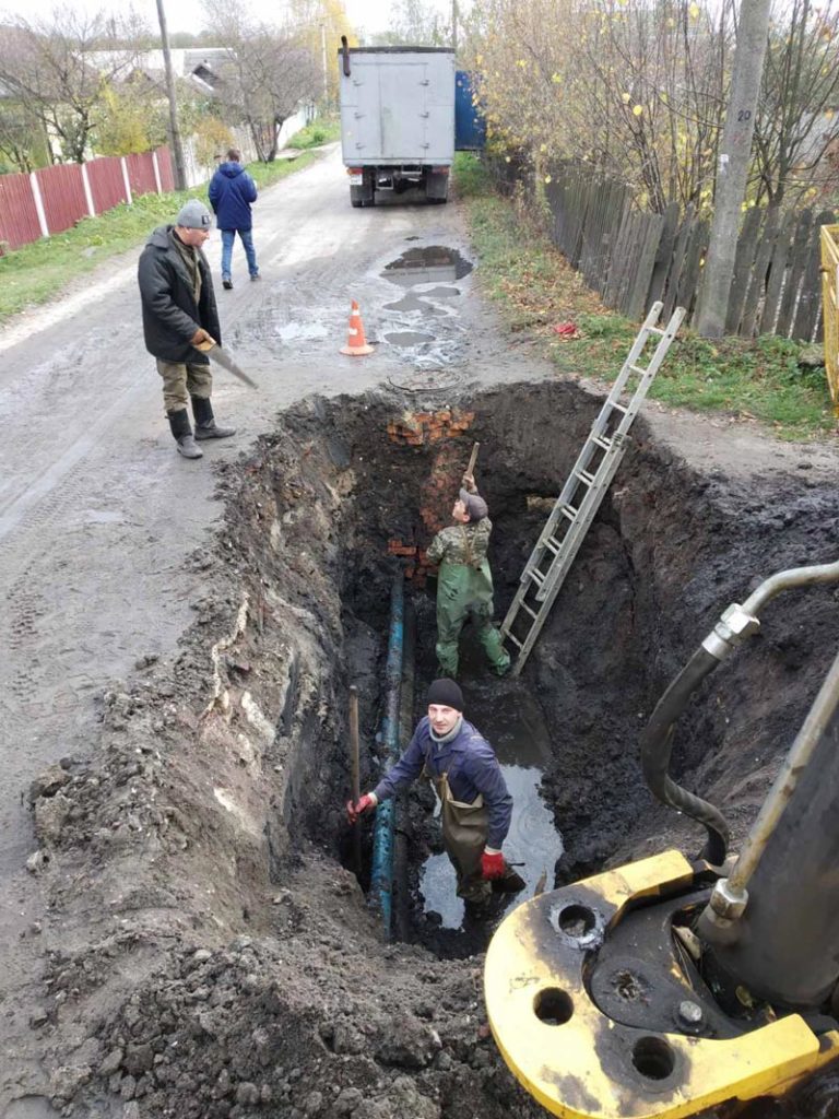 4. Внаслідок виникнення тріщини у азбестоцементній трубі діаметром 150 мм. на пров. Шевченка були проведені аварійно-відновлювальні роботи. На водогоні було замінено 2,5 метри азбестоцементної труби на ПЕ (поліетиленову напірну трубу).