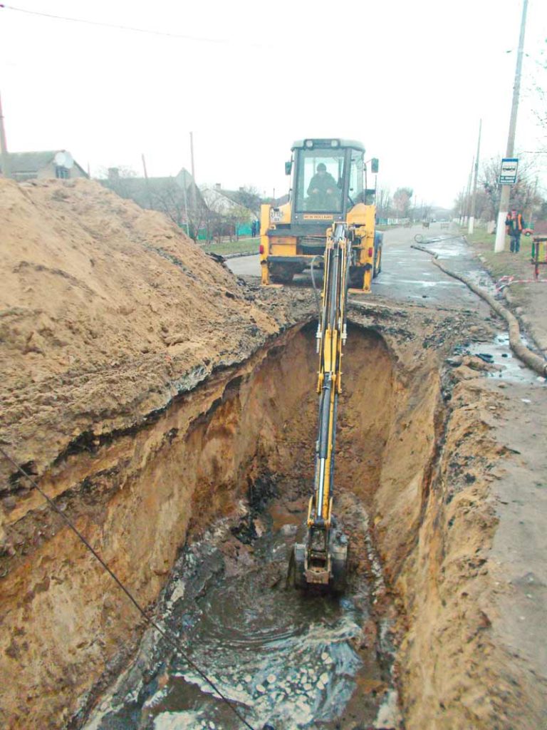 2. У мікрорайоні «Південний», на вул. Довженка, продовжуються роботи із будівництва каналізаційних мереж. Зважаючи на існуючи комунікації електричних мереж, газових та водогінних систем постачання, піщаний ґрунт, який постійно осипається з стінок канави, робота із прокладення каналізації є надзвичайно складною. Незважаючи на велику складність роботи, за минулий тиждень прокладено 36 метрів труби ПВХ (полівінілхлоридної) діаметром 200 мм, яка підключена до центрального колектору.