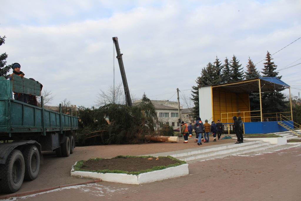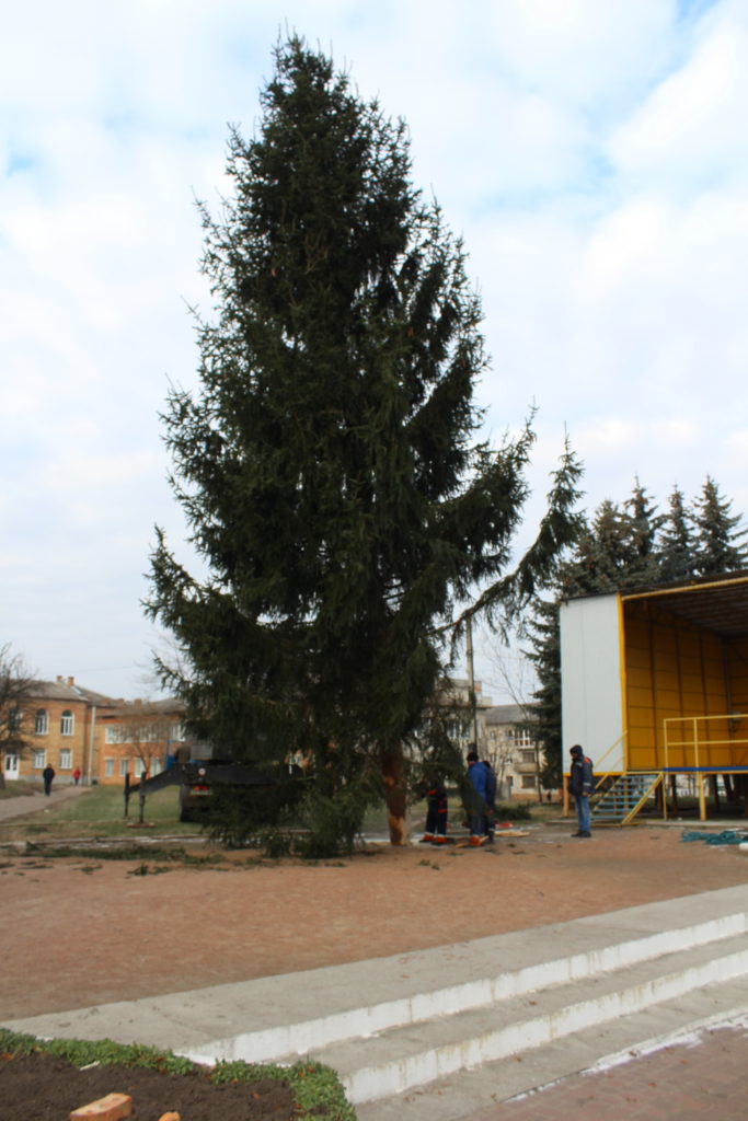 Сьогодні, 09 грудня, на центральній площі Славути працівники КП «Славута-Сервіс» працюють над встановленням головної ялинки нашого міста.