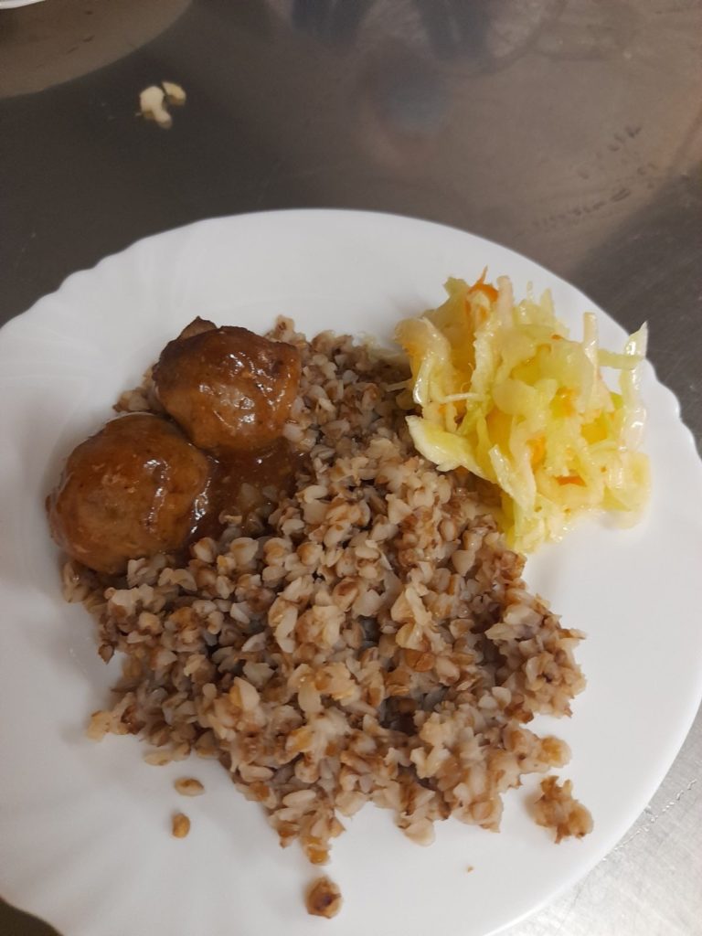 З використанням простих і звичних для нас продуктів кухарі готують нові страви, причому значно смачніші і корисніші.Сьгодні славутські школярі знають,що таке болоньєзе, нагетси курячі, курка з паприкою, курка, тушкована в соусі, м’ясні фрикадельки з соусом кетчуп салат «Вітамінний», суп гороховий з грінками, картопля запечена з куркумою.