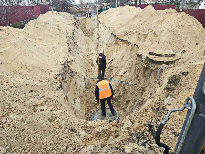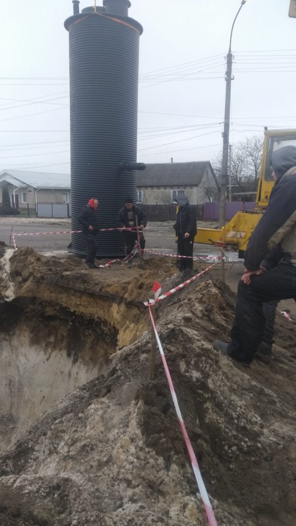 У мікрорайоні «Мокроволя» тривають роботи із реконструкції каналізаційних мереж. Наразі працюють над монтажем каналізаційно-насосної станції на перехресті вулиць Острозька та Суворова.
