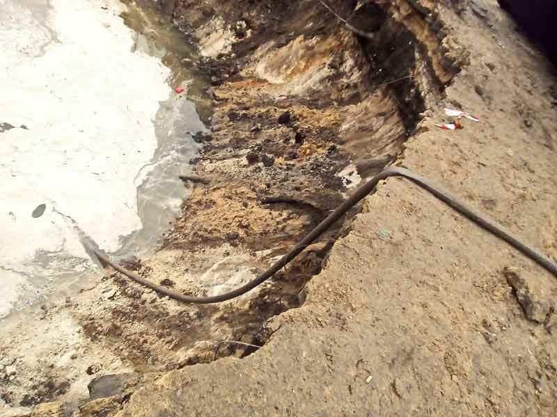 Зважаючи на існуючи комунікації електричних мереж, газових та водогінних систем постачання, піщаний ґрунт, який постійно осипається з стінок канави, робота по прокладенню каналізації є надзвичайно складною. Прокладено 64 метрів труби ПВХ (полівінілхлоридної) діаметром 200 мм. Змонтовано колодязь інженерних комунікацій. Проведено облаштування траси.