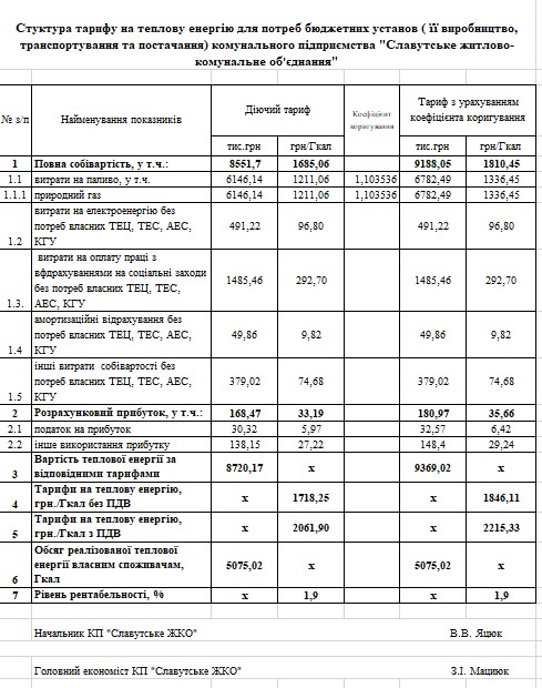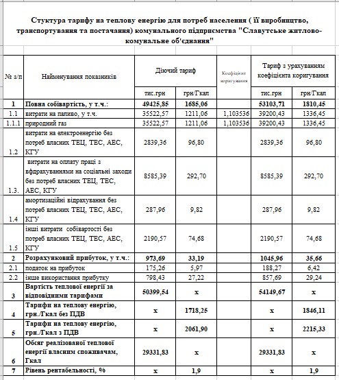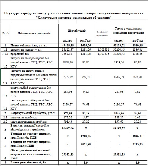 Із-за причини підвищення вартості закупівлі головного енергоресурсу – природного газу, який є складовою тарифу та займає в структурі тарифу більш ніж 70%, зміна якого не залежить від діяльності  КП «Славутське ЖКО» неминуче приводить  до росту тарифів на теплову енергію та послуг з постачання теплової енергії.