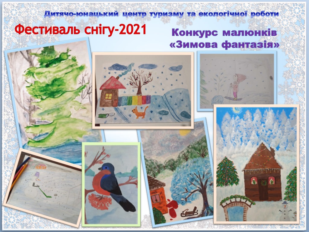 Чимало вмілих художників серед юних туристів, краєзнавців та екологів ДЮЦТЕР виявив конкурс малюнків «Зимові фантазії»: Антонюк Ірина (гурток «Людина і довкілля»), Степанюк Андрій та Дольна Андріана (гурток «Сходинки в світ туризму»), Густі Аріна та Ковбасюк Катя (гурток «Юний турист»).