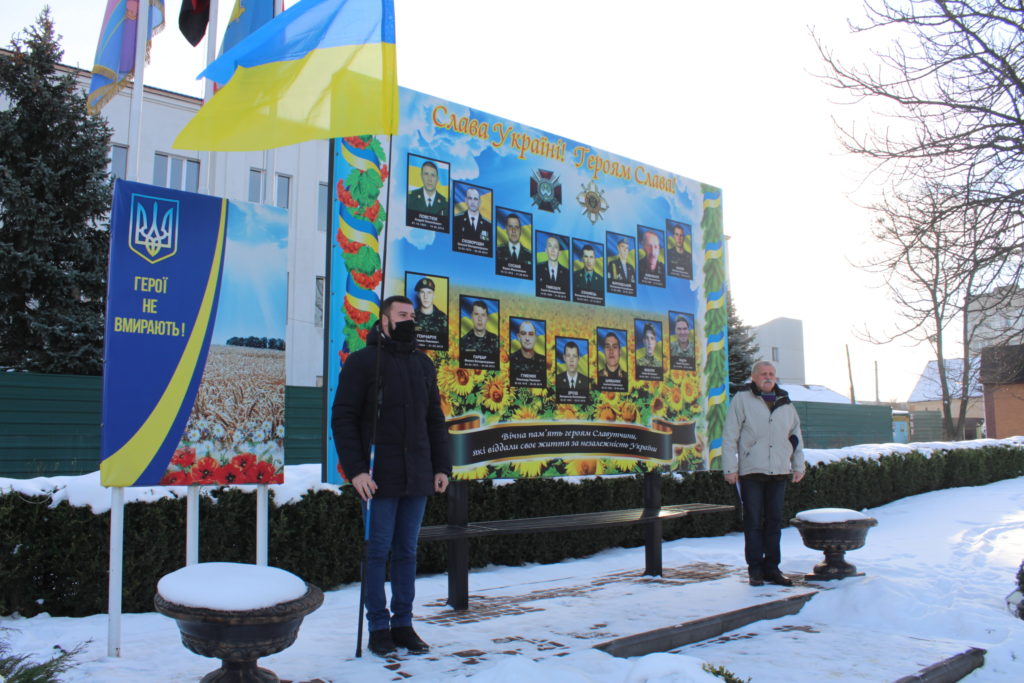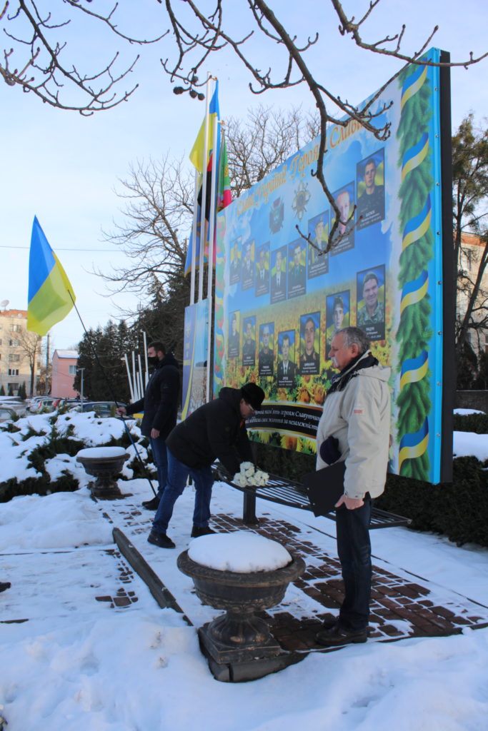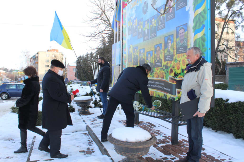З цієї нагоди вшанували світлу пам’ять борців за незалежність України усіх поколінь хвилиною мовчання та поклали квіти до стели пам’яті Героїв АТО/ООС Славутчини.