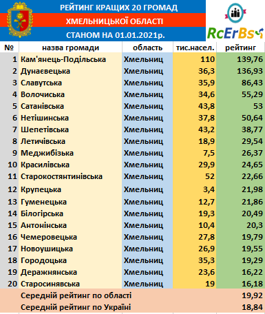 До вашої уваги 20 найкращих громад Хмельницької області станом на 01.01.2021.