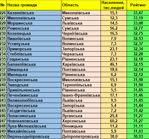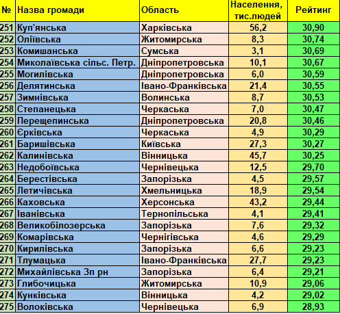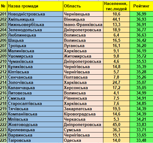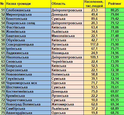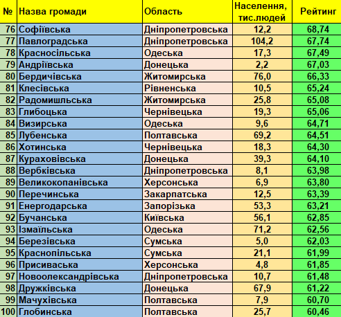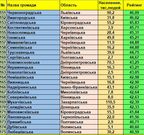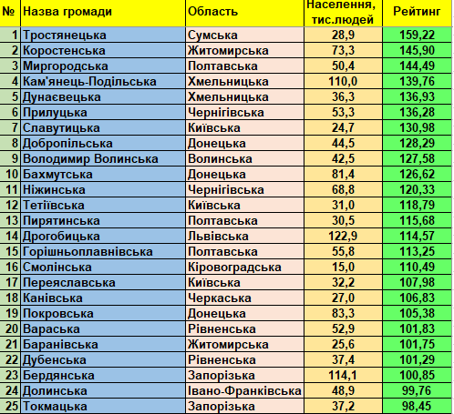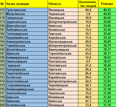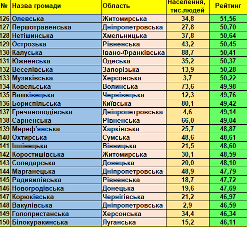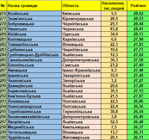 Фонд «Регіональний центр економічних досліджень та підтримки бізнесу» представляє триста кращих малих та середніх України громад (до 150 тис. мешканців) станом на 01.01.2021 відповідно до «Всеукраїнського рейтингу інституційної спроможності та сталого розвитку громад».