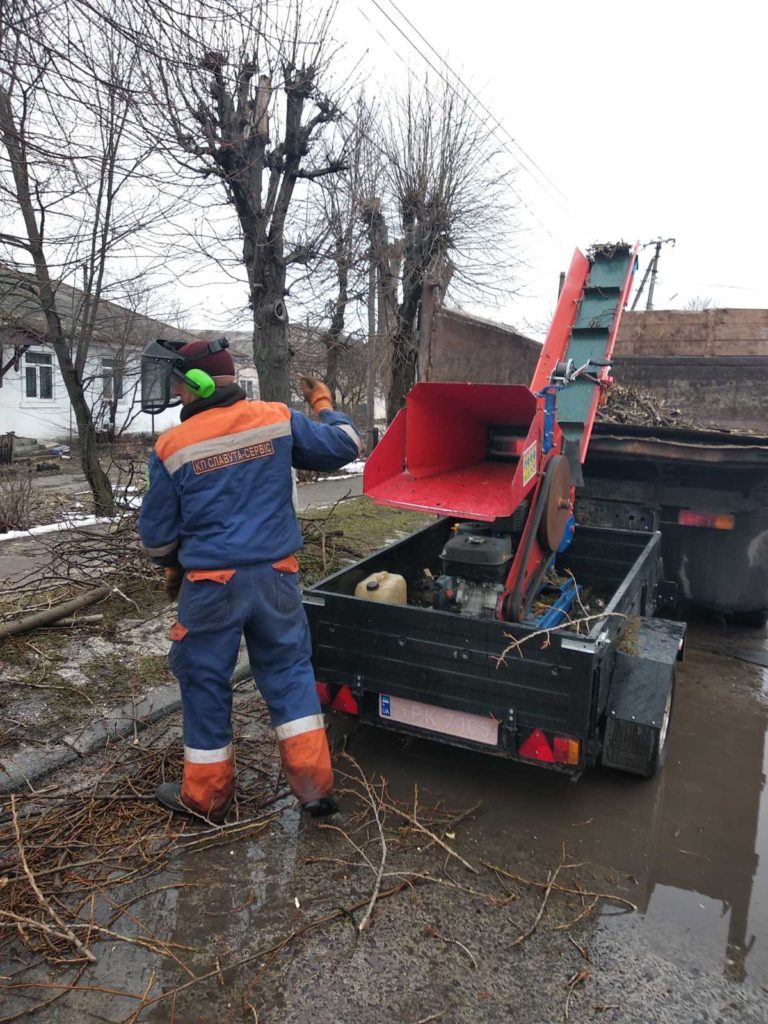 Крім того, працівниками підприємства проводиться розчищення дерев від сухого гілля та його дробіння. На фото – роботи на вулиці Козацькій.