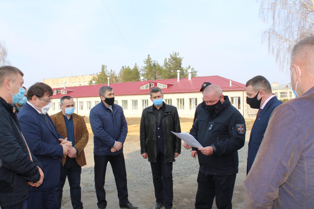 Разом із міським головою Василем Сидором, директором Славутської міської лікарні Леонідом Радзивілюком, представниками Державної служби із надзвичайних ситуацій, комунальних підприємств та установ міста присутні проінспектували хід виконання робіт із розгортання мобільного шпиталю для надання медичної допомоги хворим на COVID-19.