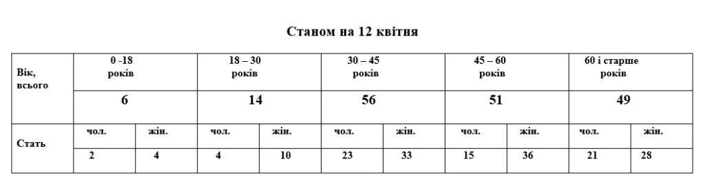 Всього захворіло станом на 12 квітня – 176 людей, з них: