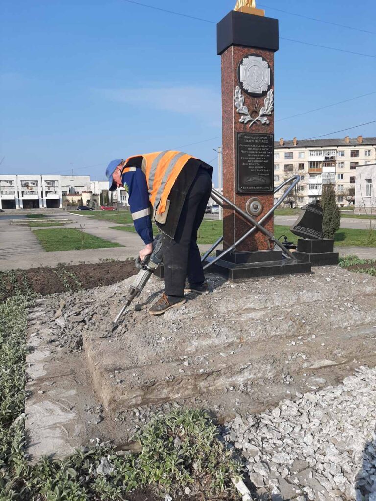 - благоустрій території біля пам’ятника героям-ліквідаторам – наразі проводиться заміна плитки;