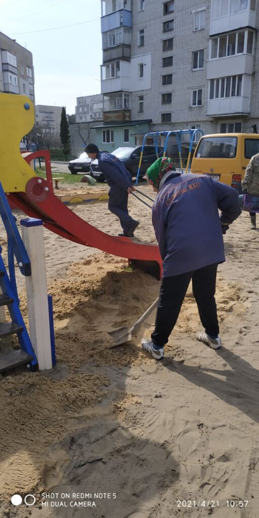 Наразі працівники КП «Славутське ЖКО» активно приступили до фарбування та ремонту малих архітектурних форм, дитячих та спортивних майданчиків, розвезення піску у пісочниці тощо.