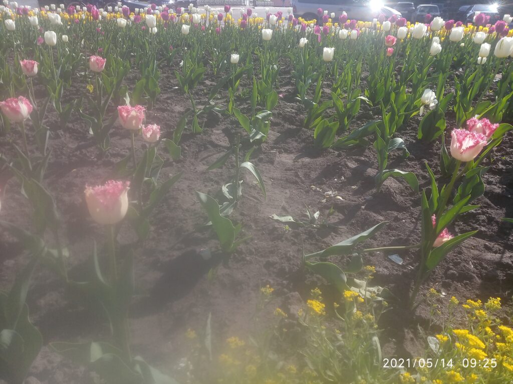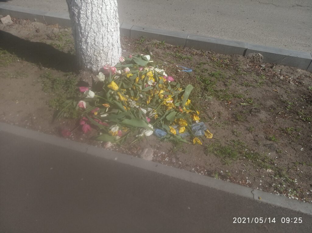 У ніч з 11.05.2021р. на 12.05.2021р. невідомі особи знищили тюльпани в центрі міста поблизу Меморіалу пам`яті загиблим у роки Другої світової війни Славутчанам.