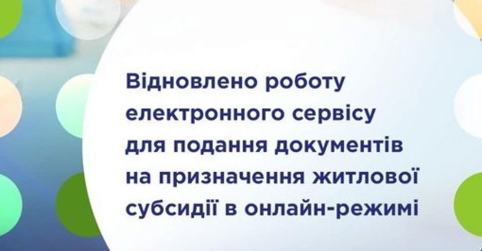 Відновлено роботу електронного сервісу для подання документів на призначення житлової субсидії.
